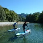 Anyone who can swim is welcome to join our stand-up paddleboarding tours, even without any prior experience with SUP. If you feel unsure, we can provide you with a life jacket — just tell us before the tour. You need some prior experience to join our whitewater tour in Bovec, but we give you a course in the specifics of tackling the rapids on a stand-up paddleboard. You just need to know the basics, before you get there.